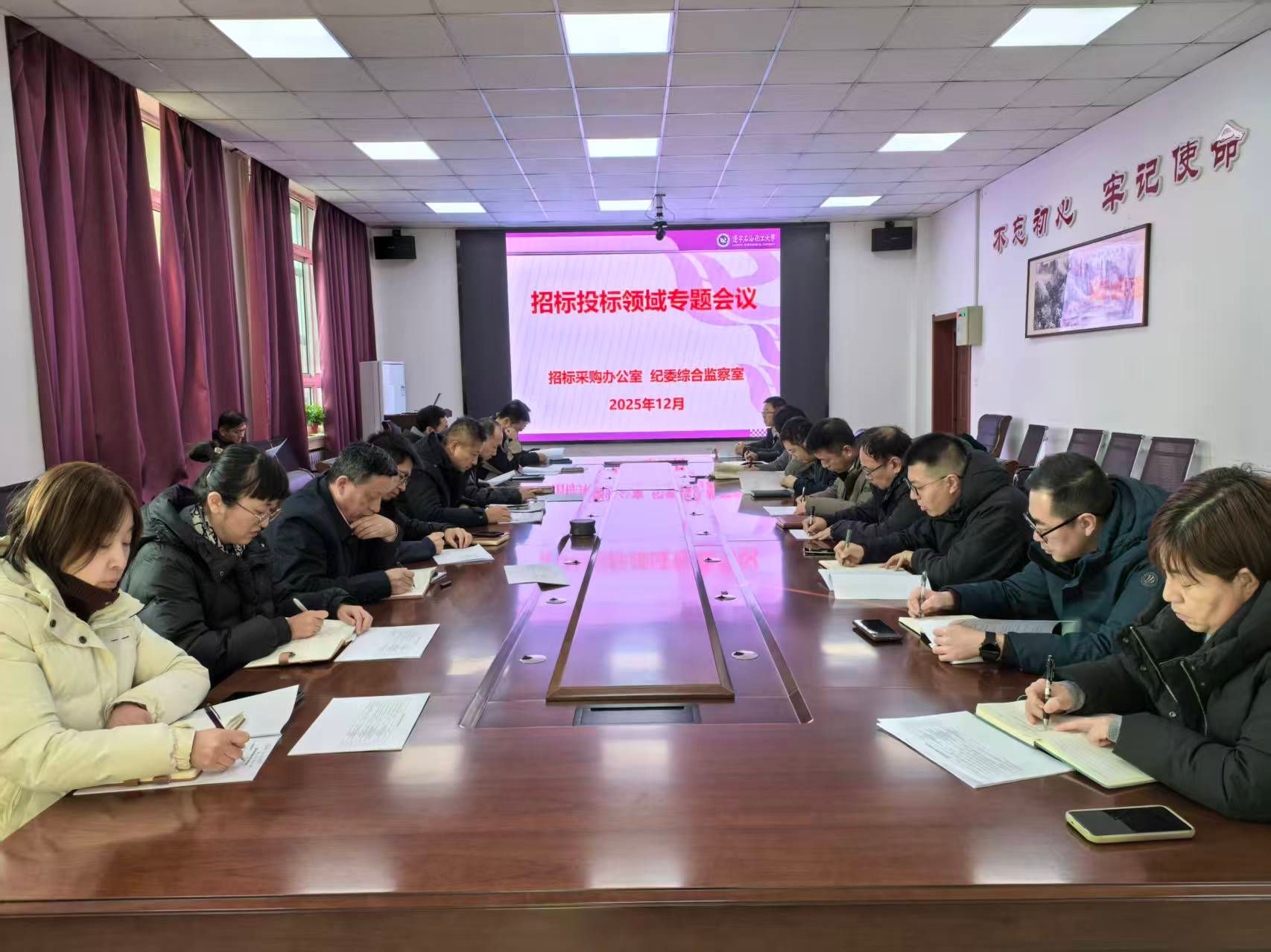 会上,校纪委综合监察室副主任黄君山通报了公开征集线索、受理投诉举报的联系方式,提出深入排查招标投标违法行为,摸清问题底数,并梳理形成问题清单,对查摆出的问题能纠正的立即纠正,不能立即纠正的拿出整改举措,确保整治工作取得实效,共同营造风清气正的招标采购环境。海军传达了上级部门下发的文件精神和工作要求,详细解读了《省属高校招标投标领域突出问题系统整治工作方案》以及学校开展招标投标领域突出问题系统整治工作情况,要求各单位在学院、部门会议上进行传达和学习,确保招标采购活动不出现《招标投标领域问题风险排查指引》中列出的问题,将风险防控的关口前移,实现从“事后纠偏”到“事前预防、事中监控、事后评价”的转变。